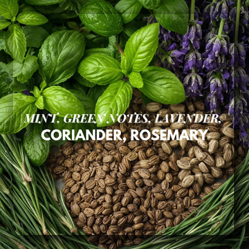 Notes: Mint, Lavender, Coriander, Rosemary • Neroli, Jasmine • Cedar, Amber, Tobacco