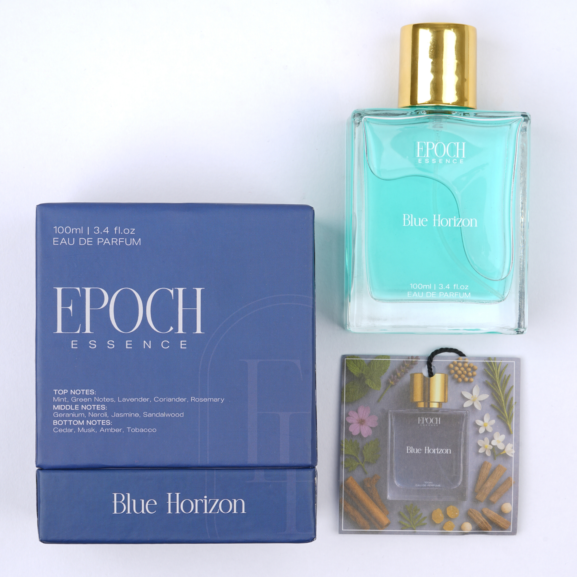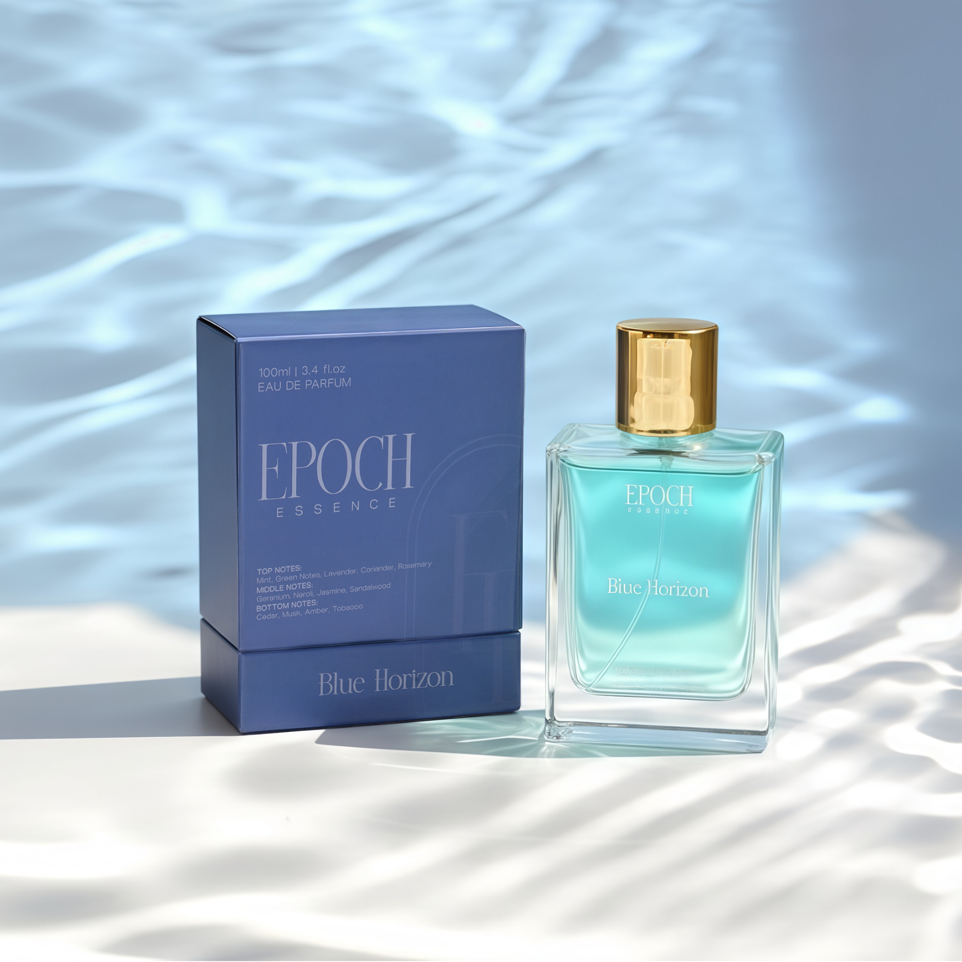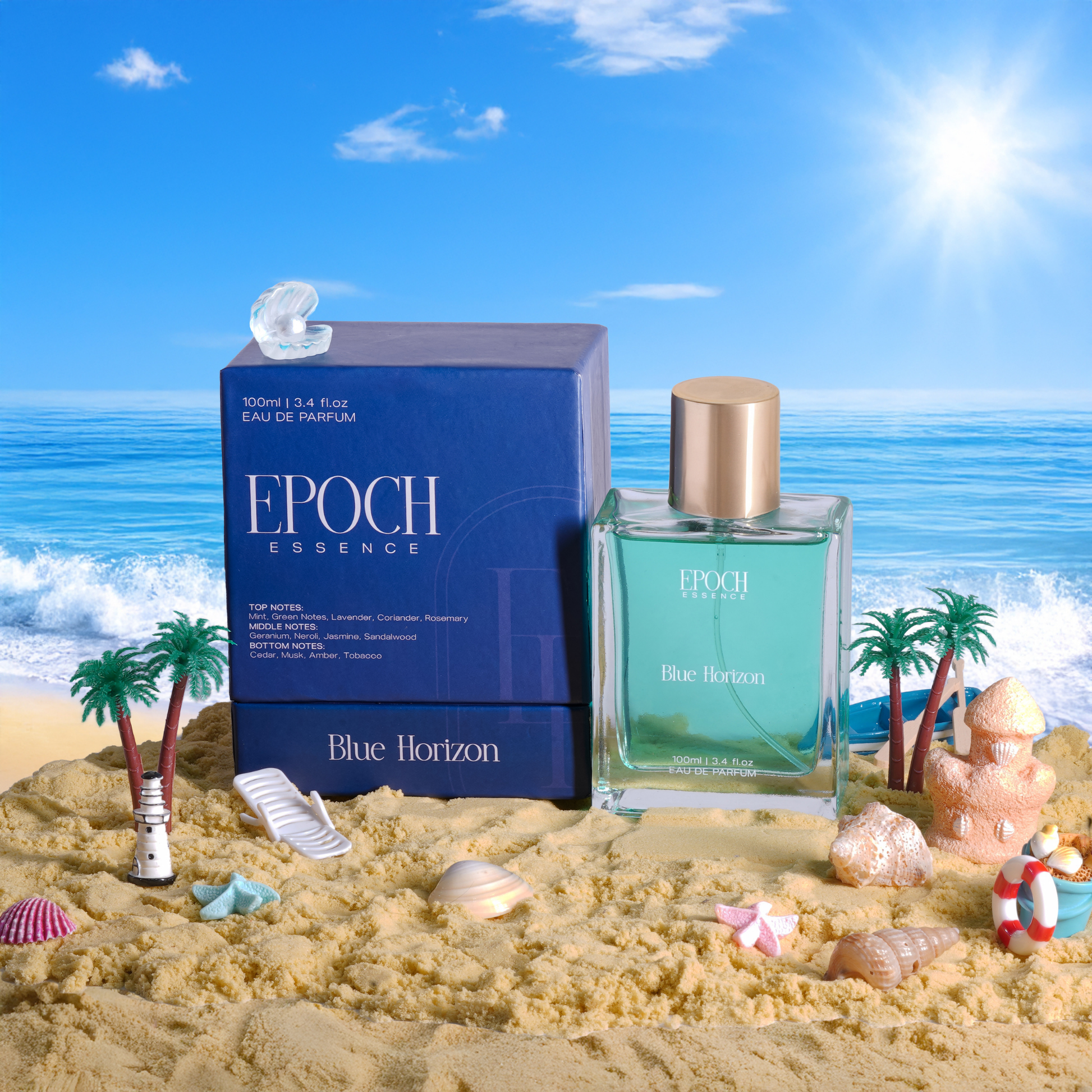 Blue Horizon captures the essence of endless summer — breezy, aquatic, and confidently masculine. Crisp herbs and sea breeze mingle with neroli and amber, creating a timeless scent that stays with you through day and night.