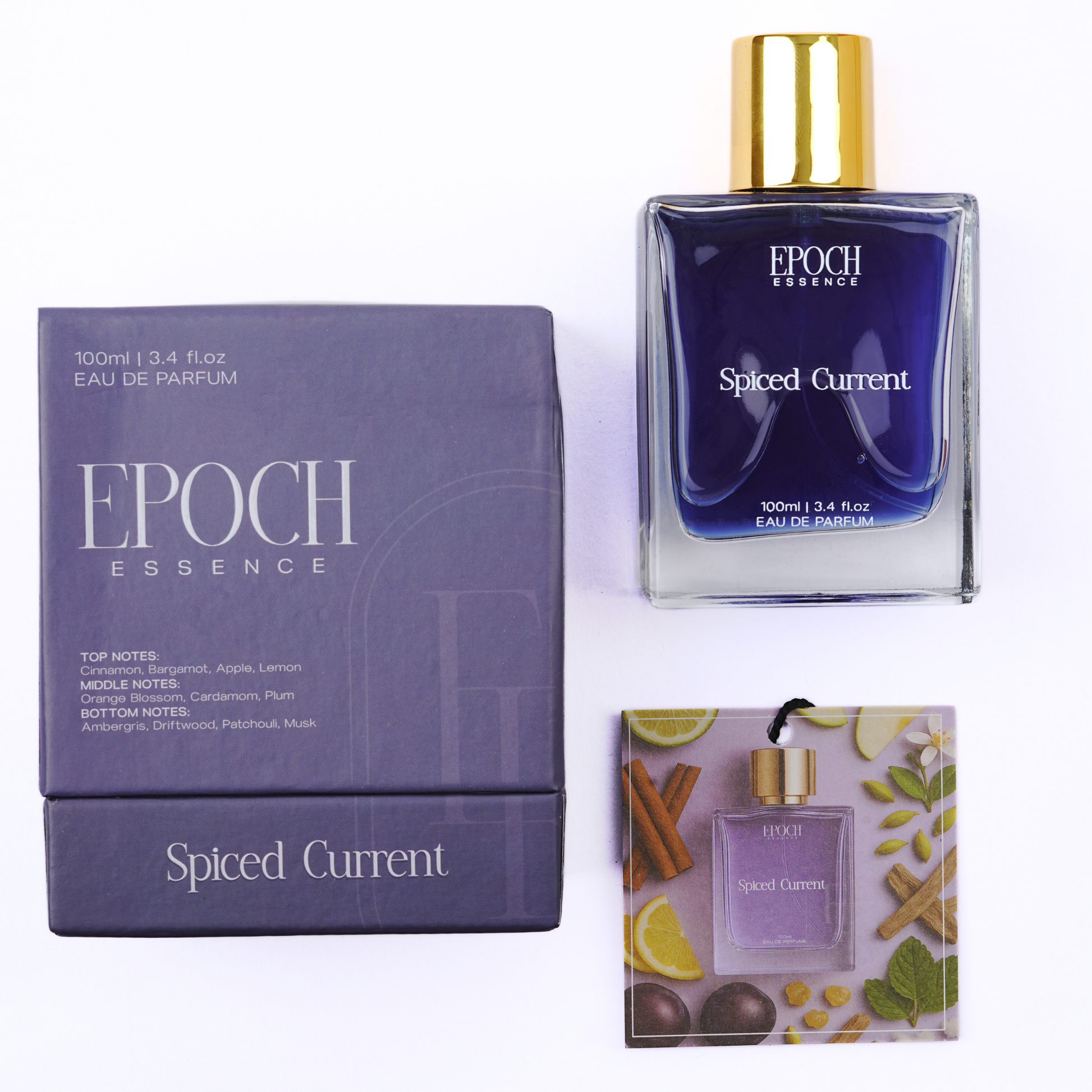 Experience Spiced Current, a bold blend of fruity freshness and warm spice. Bright apple and lemon meet deep plum and cardamom, wrapped in a sensual base of amber and musk. Perfect for those who love to stand out with energy and style.